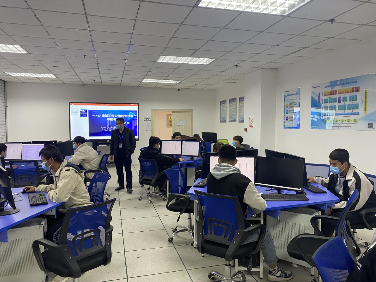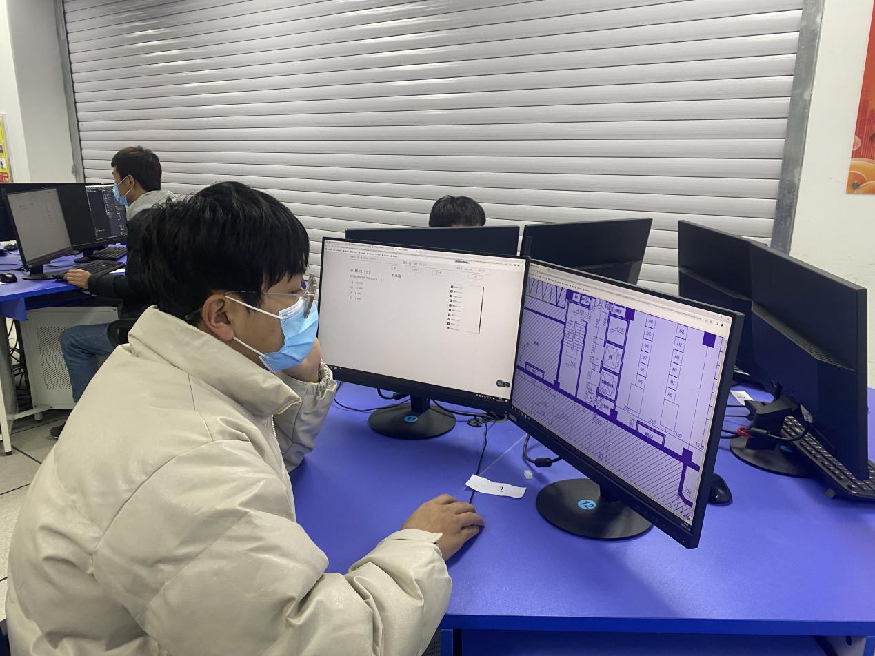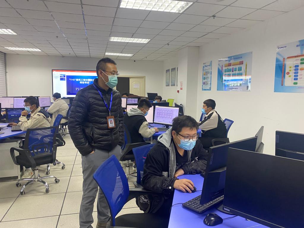 11月19日下午,TapTap点点在BIM技术中心组织开展了“1+X”建筑工程识图(建筑设计类中级)职业技能等级证书考核。经前期遴选、线上线下培训,最终11名员工参加此次考核。教务处负责人薛亚宏、科长刘青青、公司党支部书记、经理谢延友巡查考核现场。