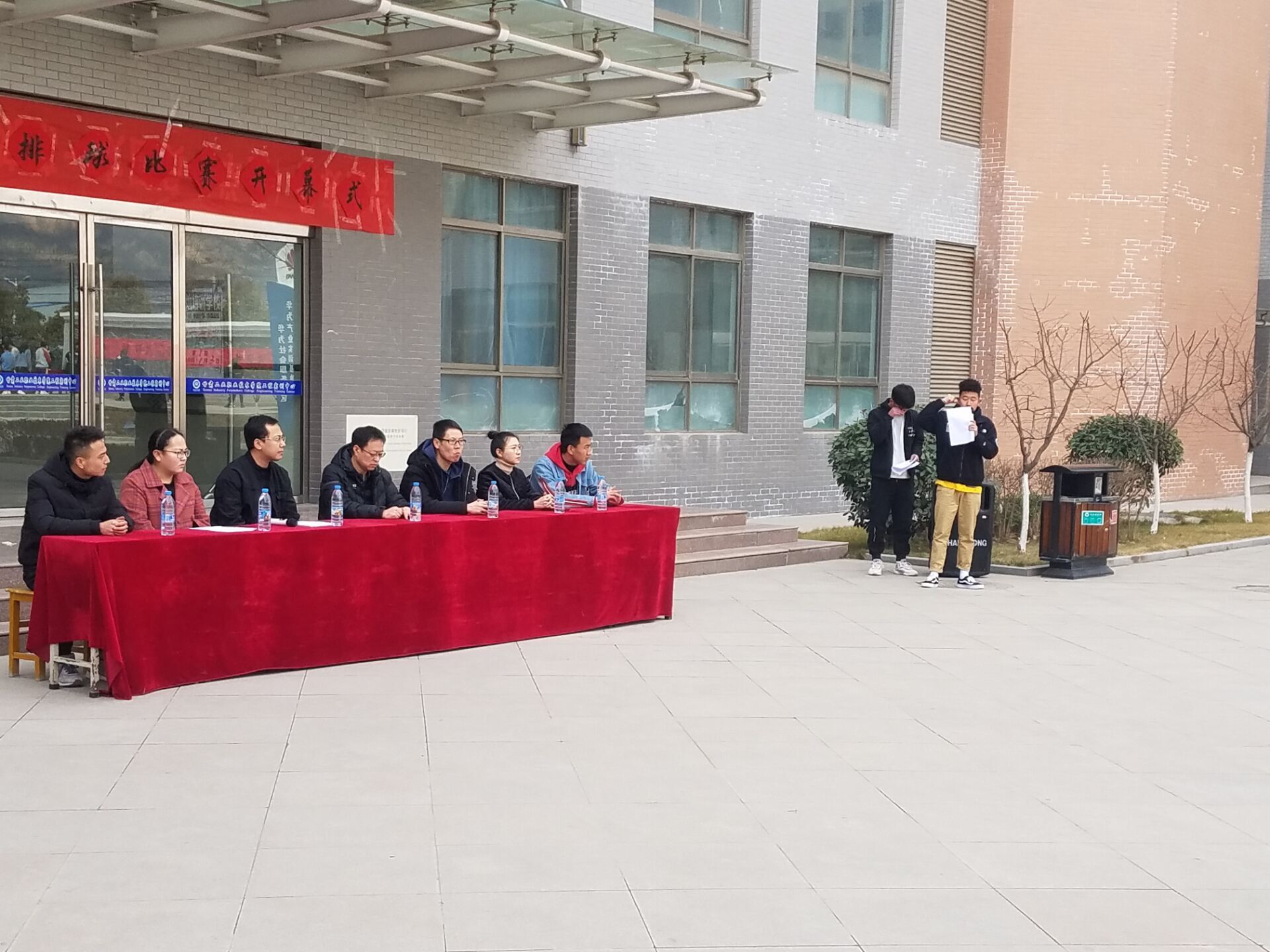 3月11日中午,全体17、18级员工在实训楼前门前参加了“迎春杯”排球比赛开幕式,出席本次开幕式的领导有:TapTap点点副经理蔺吉秋、辅导员裴旻峰、邓薇薇、宋彦达,以及员工会副主席罗鑫、体育部部长李佳豪。运动员、裁判员在广场宣誓完毕,副经理蔺吉秋宣布比赛正式开始。