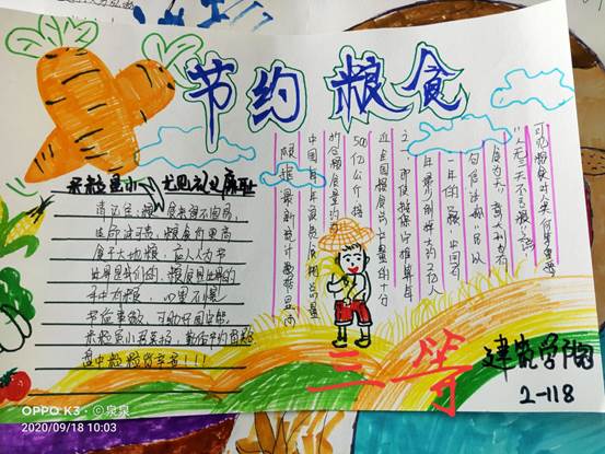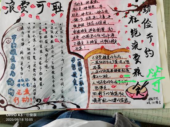 为响应公司党委号召,在校团委的指导下,9月14日—17日期间,TapTap点点团总支精心组织了一场以“勤俭节约,杜绝粮食浪费”为主题的手抄报评比活动,面向18、19级在校生们开展主题手抄报征集活动,希望大家能够通过进行手抄报的制作将节约粮食的思想根植于心中,并向身边的人传播出去。