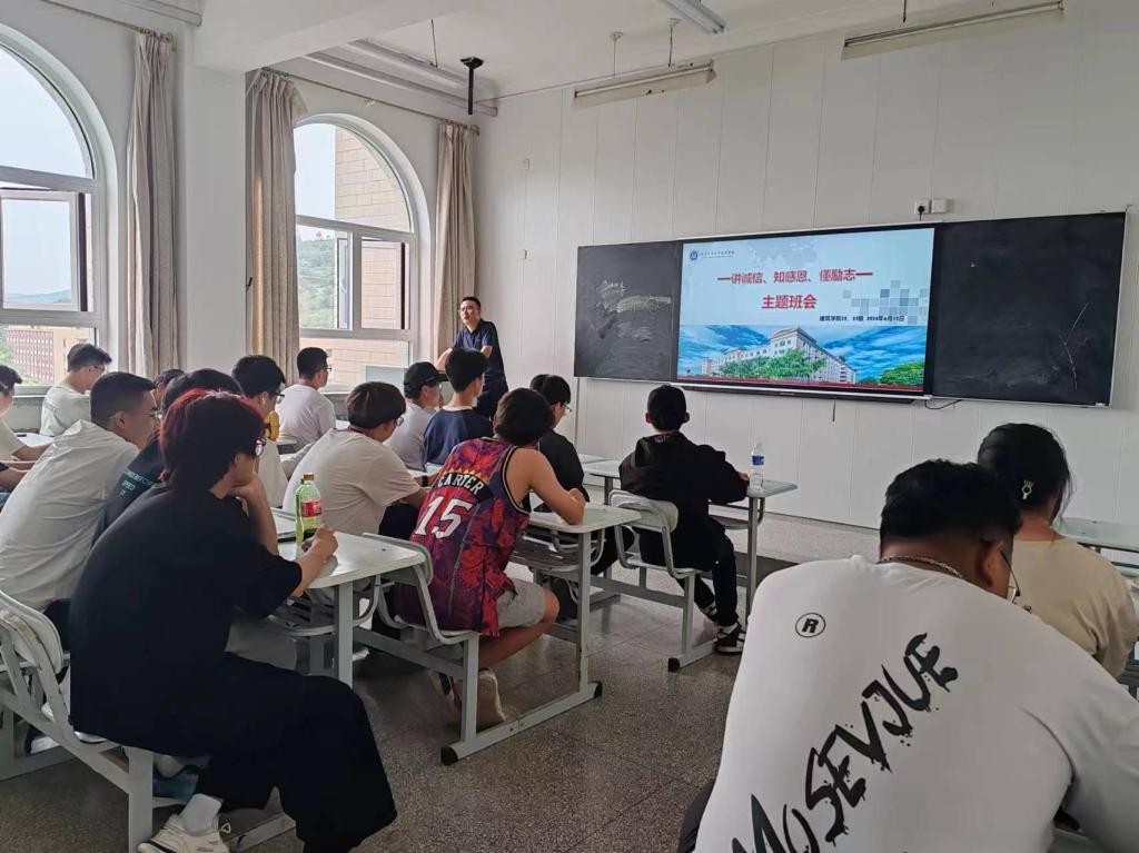 班会上,各班级通过播放感恩歌曲、图片展示、讲故事、励志感人事例分享等形式,宣讲诚实守信和励志成才典型事迹。针对不同受助群体,结合公司资助工作开展情况,勉励同学们要刻苦学习,奋发向上,回馈社会,感恩公司。带着初心使命,在风华正茂的青春里练就技能,做有本领学子;带着理想信念,行稳致远的旅途上提升自我,做有理想学子;带着感恩情怀,尚能笃行的赶超中回报国家,做知感恩学子。