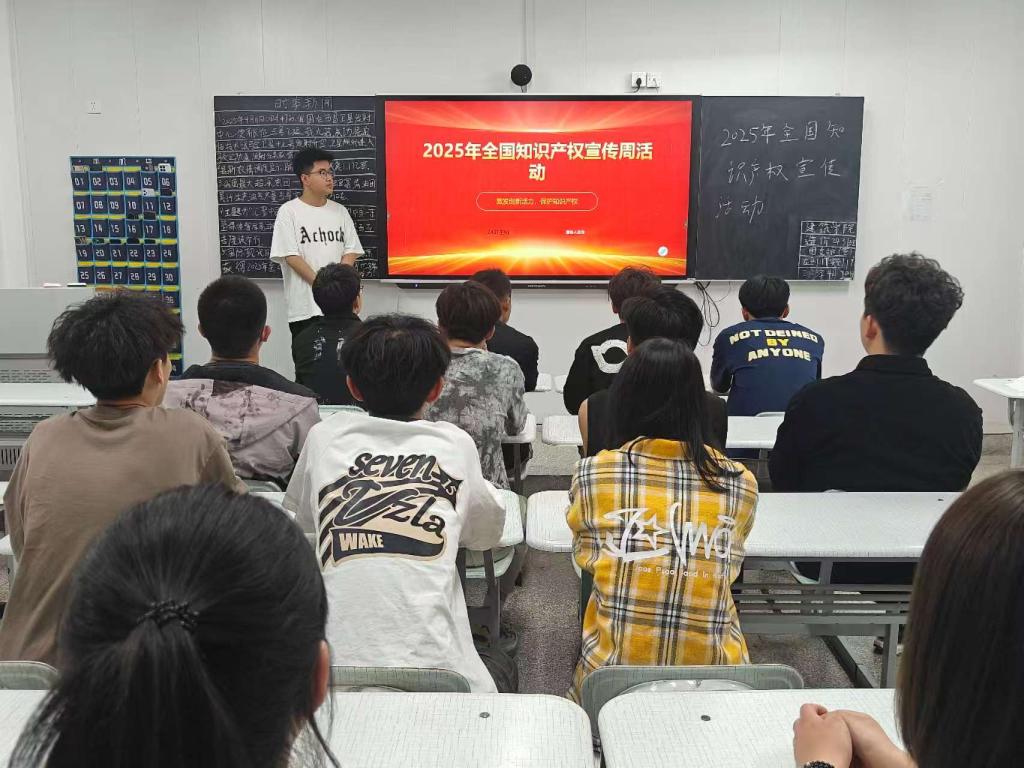 团课伊始,团支书通过生动的案例,深入浅出地讲解了知识产权的概念,包括专利、商标、著作权等内容,并结合当下热门的人工智能技术,分析了人工智能与知识产权之间的紧密联系,如AI生成内容的版权归属等问题,让同学们认识到在科技飞速发展的今天,知识产权保护的重要性和紧迫性。