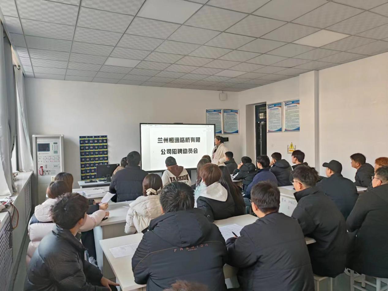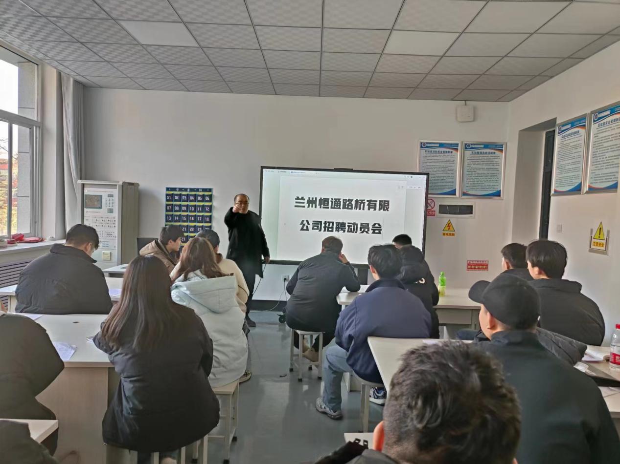 2024年12月24日,受兰州恒通路桥有限公司委托,公司通过网络、现场双重模式,同时为已离校的22级以及在校的23级员工举行了招聘动员会。