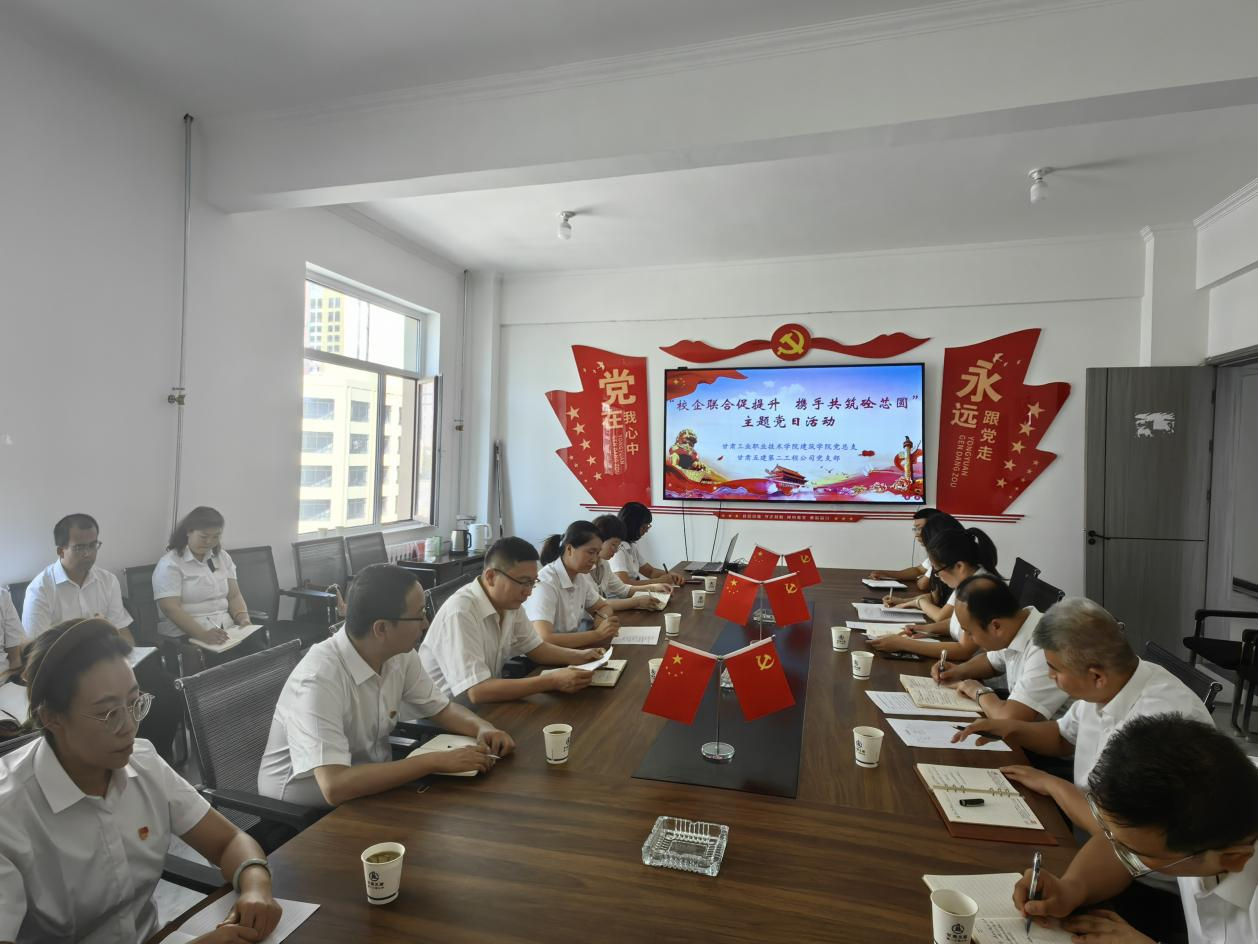 为全面贯彻落实党的二十届三中全会精神,传承红色基因,提升党员干部的责任感、使命感,进一步提升党建工作价值创造力,加强校企之间的交流与合作,共育工程建设领域专业人才,9月25日,在建国75周年来临之际,公司党总支联合甘肃五建第二工程公司党支部开展“校企联合促提升 携手共筑砼芯圆”主题党日活动。此次活动在百郦东方项目部举行,双方就校企支部联建召开了座谈会。