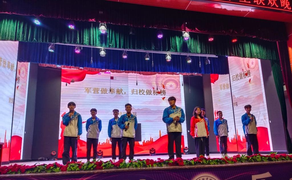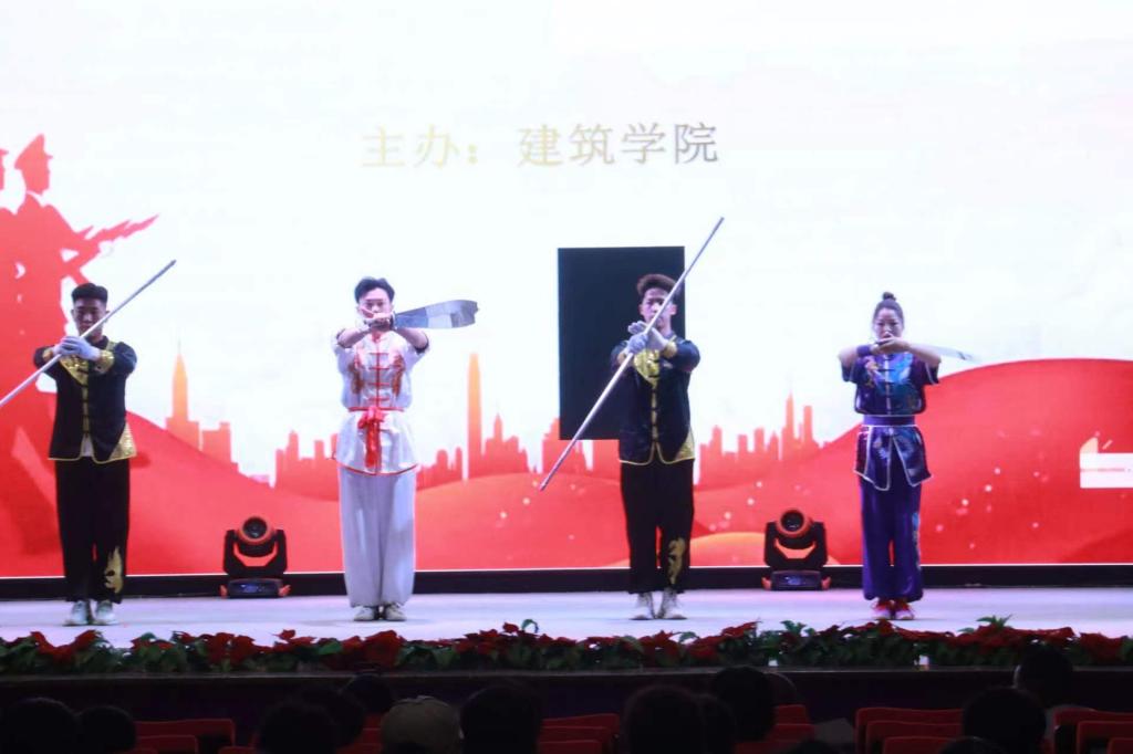 随后,晚会在舞狮表演中拉开序幕。退伍员工的列队展示+合唱,乐队演奏《国际歌》,朗诵《中国少年说》、《与时代同行,与祖国同行》、《短文诗四首》,歌曲《赞歌》,武术《双节棍》、《南刀、南拳、南棍》,舞蹈《丝路幻影》、《维吾尔族姑娘》,合唱《奢香夫人》、《明天会更好》等节目精彩纷呈。晚会现场气氛热烈,掌声不断。