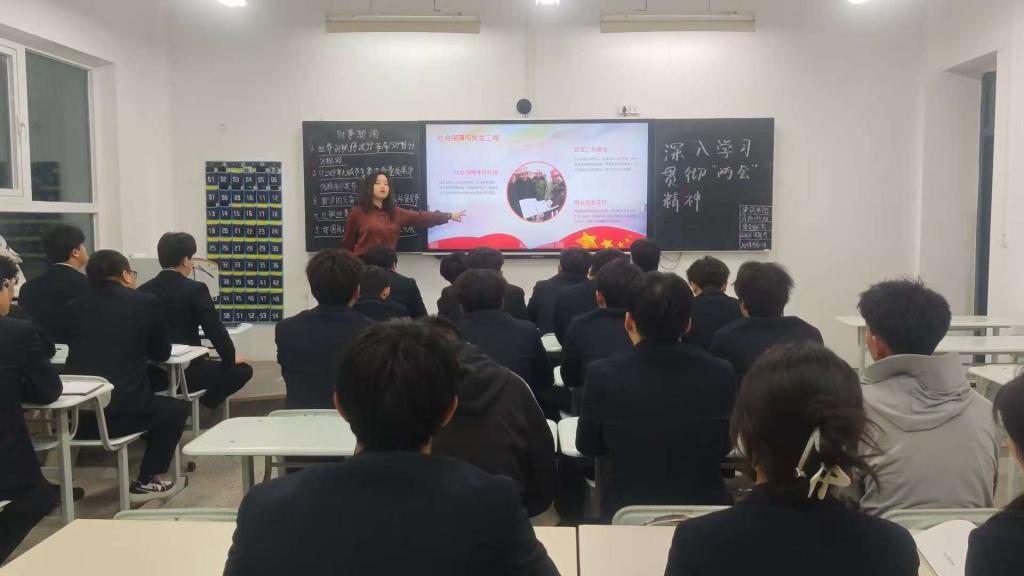 活动开始,老师首先向同学们介绍了“两会”的基本概况,强调了“两会”在中国政治生活中的重要地位。她详细阐述了“两会”期间提出的一系列新政策、新举措,以及这些政策举措对于国家未来发展的深远影响。本次团课的讲解条理清晰,语言生动,不时穿插着实例分析,使得理论知识变得生动有趣,易于理解。