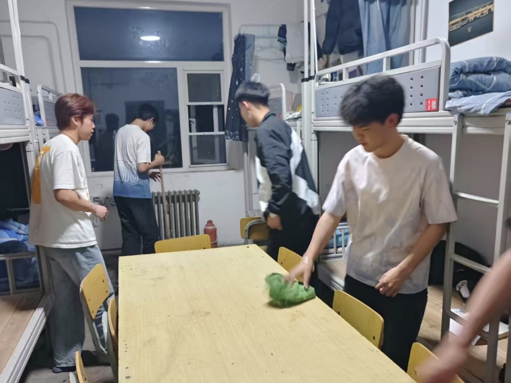 活动现场,同学们热情高涨、干劲十足。大家迅速分成小组,明确各自任务后便投入到紧张的清洁工作中。有的同学手持扫帚,仔细清扫着宿舍的每一个角落,不放过任何一片纸屑和灰尘;有的同学用湿布认真擦拭门窗、桌椅,让它们恢复光洁如新;还有的同学细心整理床铺和物品,将杂乱的宿舍变得井井有条。