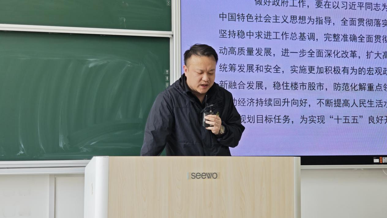 4月16日,公司党总支副书记杨霖在东阶梯教室开展“深入学习贯彻2025年全国两会精神”专题宣讲活动,全体辅导员、公司党团干部、“红旗队”队员及部分23、24级员工代表等百余人参会。宣讲内容聚焦两会关于“高质量发展”“科技创新”“民生福祉”等核心主题,并结合公司实际进行了深入讲解。
