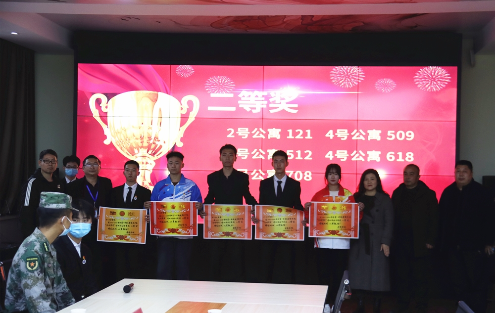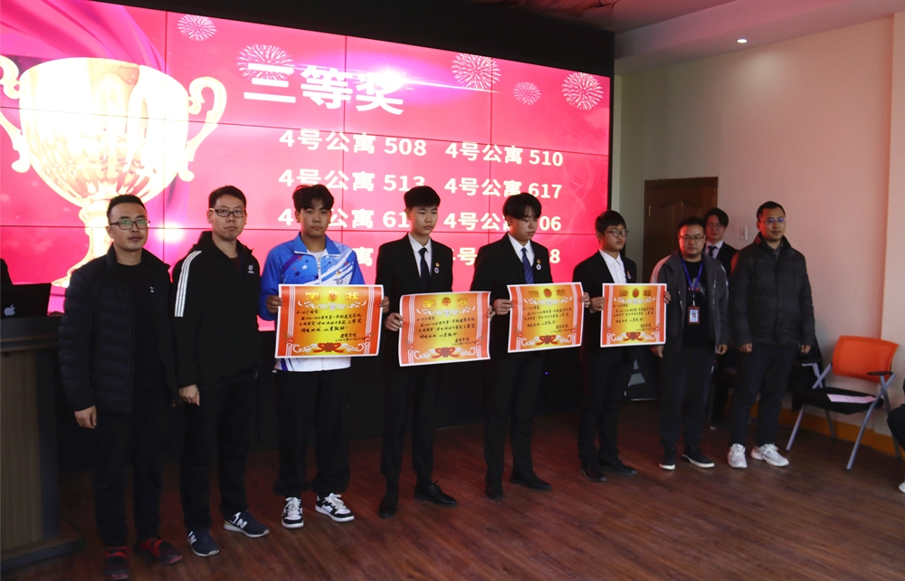 接下来,公司领导、老师对文明宿舍进行表彰,获奖宿舍员工代表依次上台领奖,并由颁奖嘉宾为其颁发奖状和奖品。老师们充分肯定了同学们在宿舍纪律、卫生等方面取得的进步。
