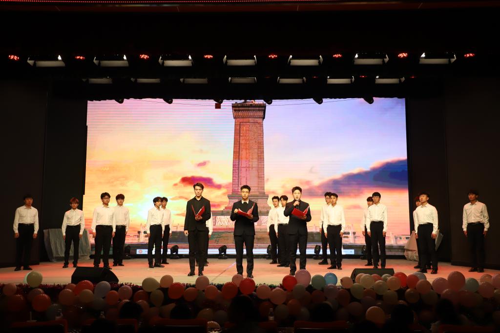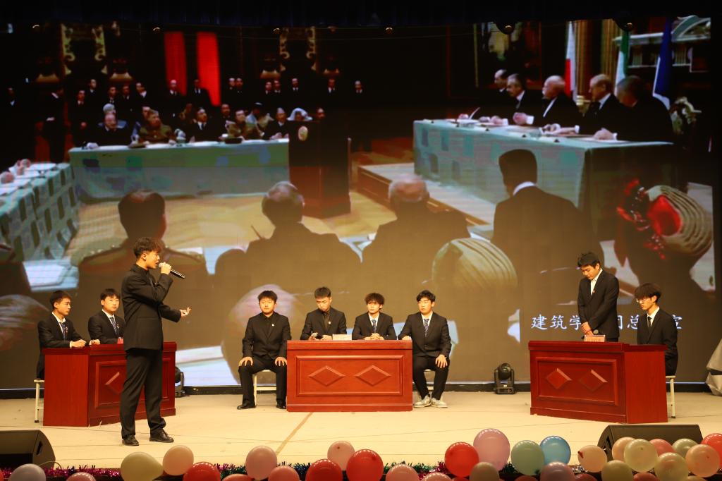 整场晚会以乐队演唱、歌舞串烧、独唱、小品表演、单板、话剧、诗词朗诵等多种表现形式,为全场观众呈现了一场难忘的视听盛宴。《歌舞串烧》、《河流》、《有你在》、《最炫民族风》、合唱等歌舞展示了建筑学子活力四射的青春气息;小品、单板展示了同学们对于社会现象的关注与想法;《巴黎和会》、《商鞅之死》、《我和我的祖国》等节目表达了师生热爱祖国、歌颂先烈、心系家国的爱国情怀……一幕幕精彩的表演,无不展示着同学们心系家国、满腔热忱、勇于创新、敢于实践的精神风貌。在优美婉转的歌声中,晚会圆满落幕,全体师生合影留念。