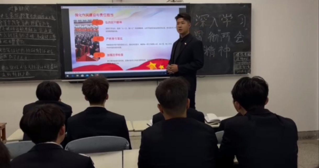 此次会议开始,公司团总支副书记李海周向大家讲述“两会”精神,激励同学们把个人成长坐标精准锚定在国家发展的宏伟蓝图中,实现小我与大我的紧密融合;推动同学们在思维的交锋和观点的碰撞里,深度挖掘“两会”精神的时代价值与实践指引;培育同学们的政治敏锐性、历史使命感与社会担当意识,全方位提升同学们的综合素质与家国情怀 。