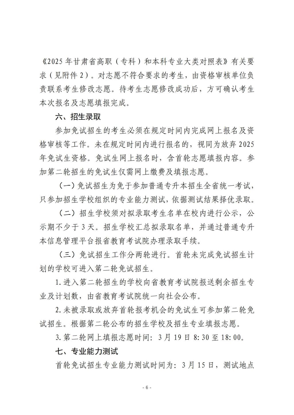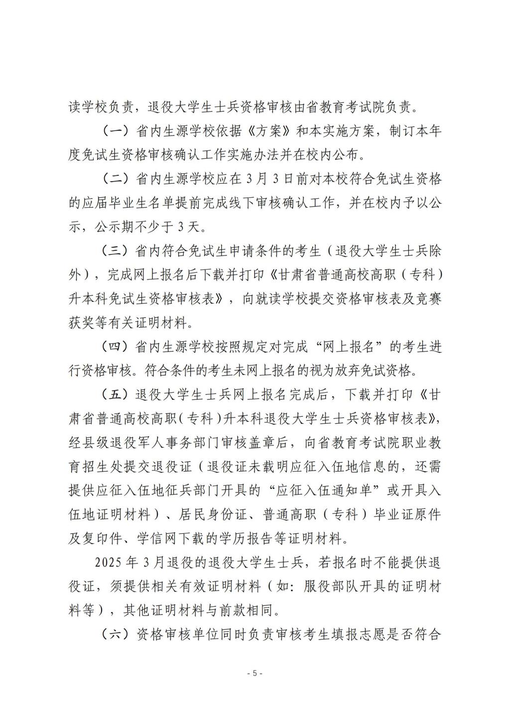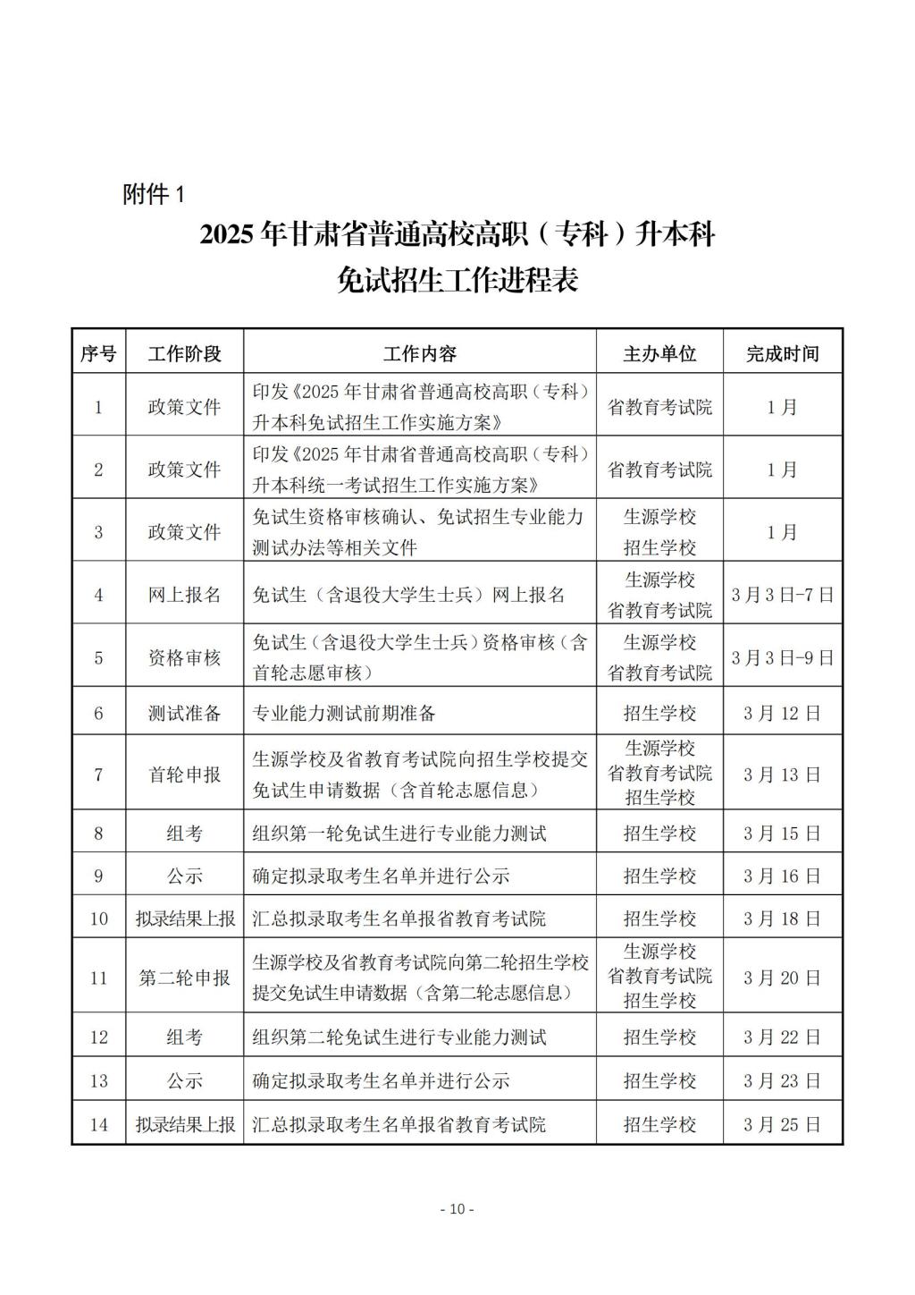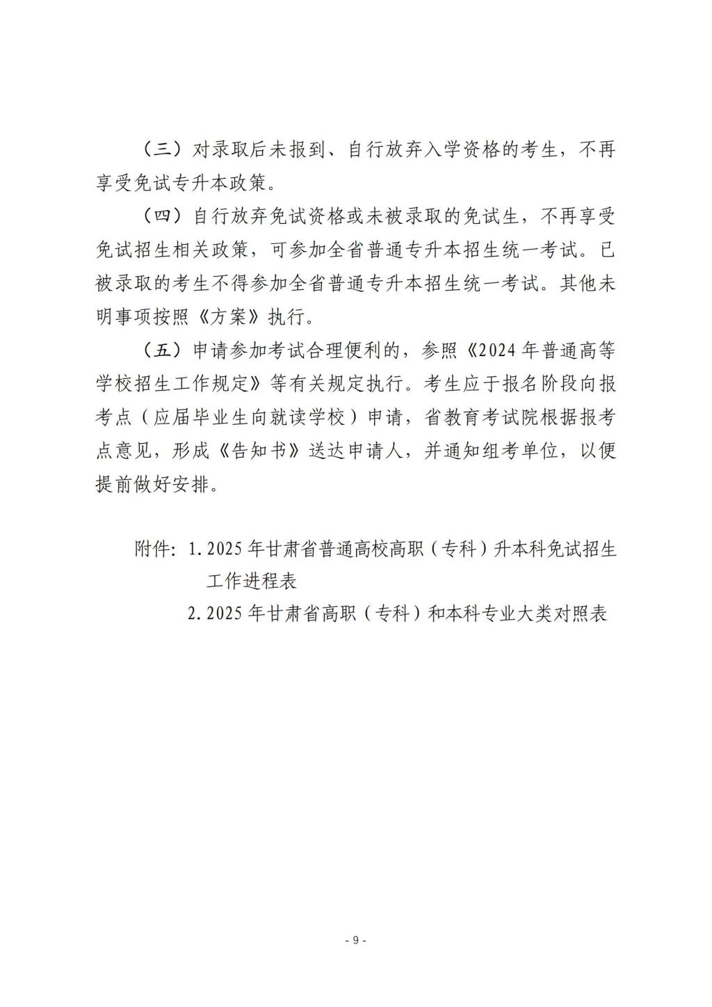 关于印发《2025年甘肃省普通高校高职(专科)升本科免试招生工作实施方案》的通知
