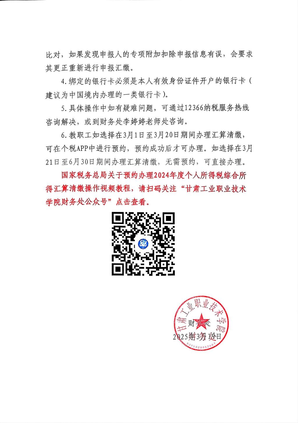 关于办理2024年度个人所得税综合所得汇算清缴的通知